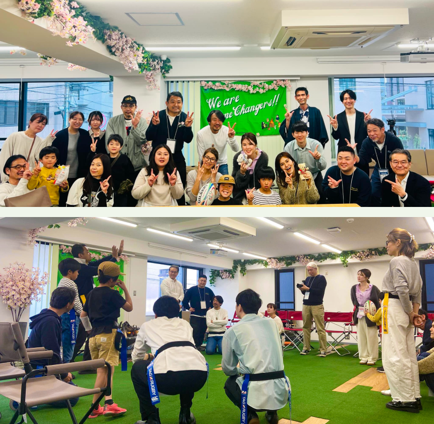 タグラグビー体験を通して、大人も子どもも一緒に学び、